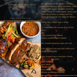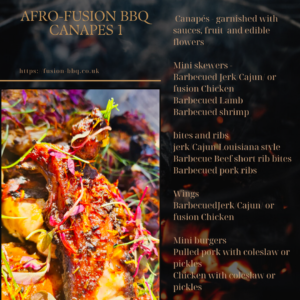 Bring something new and exciting to your event with our afro-fusion BBQ style. Our menu is bursting with tropical flavours, and a wide selection of BBQ fusion food. Cooked to perfection and displayed beautifully to make your event one to remember.