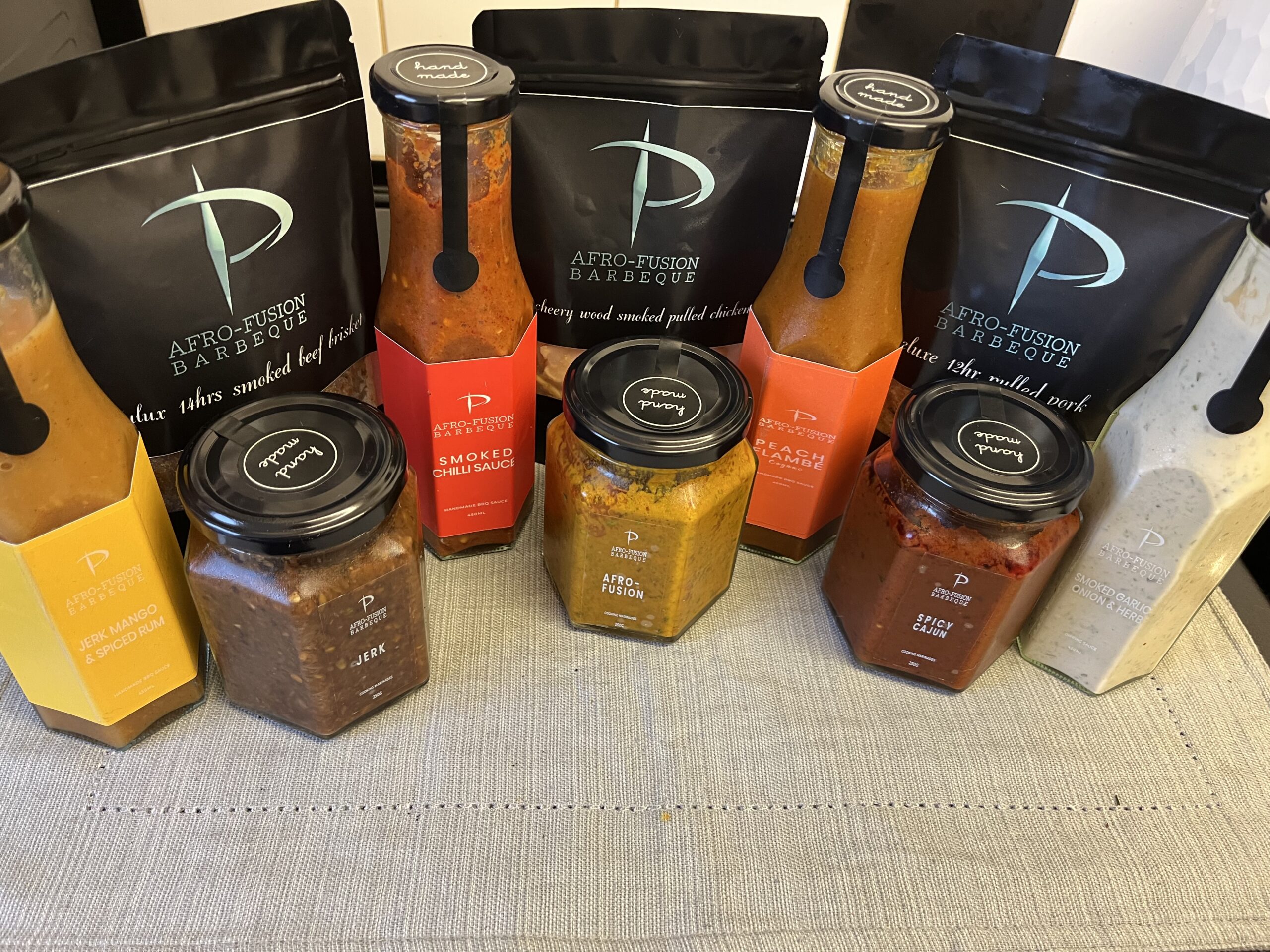 Our pulled beef is made from our unique blend of premium beef cuts, with the main cut being brisket. The beef is barbecued over cherry and hickory wood for 12 hours before being braised In our fusion sauce until it falls apart and is melt in the mouth tender. The beef is marined in the braising liquid, which has a sweet, spicy and smokey taste.