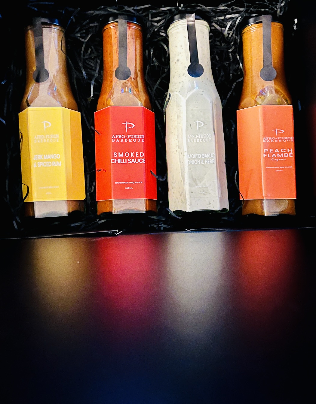 The Peach flambe and Mango jerk rum is fantastic as a finishing glaze for barbecued, grilled and oven meats. While the smoked garlic and herb and the smoked chilli sauce act as the perfect pairings to any meal especially cooked meats and salads.