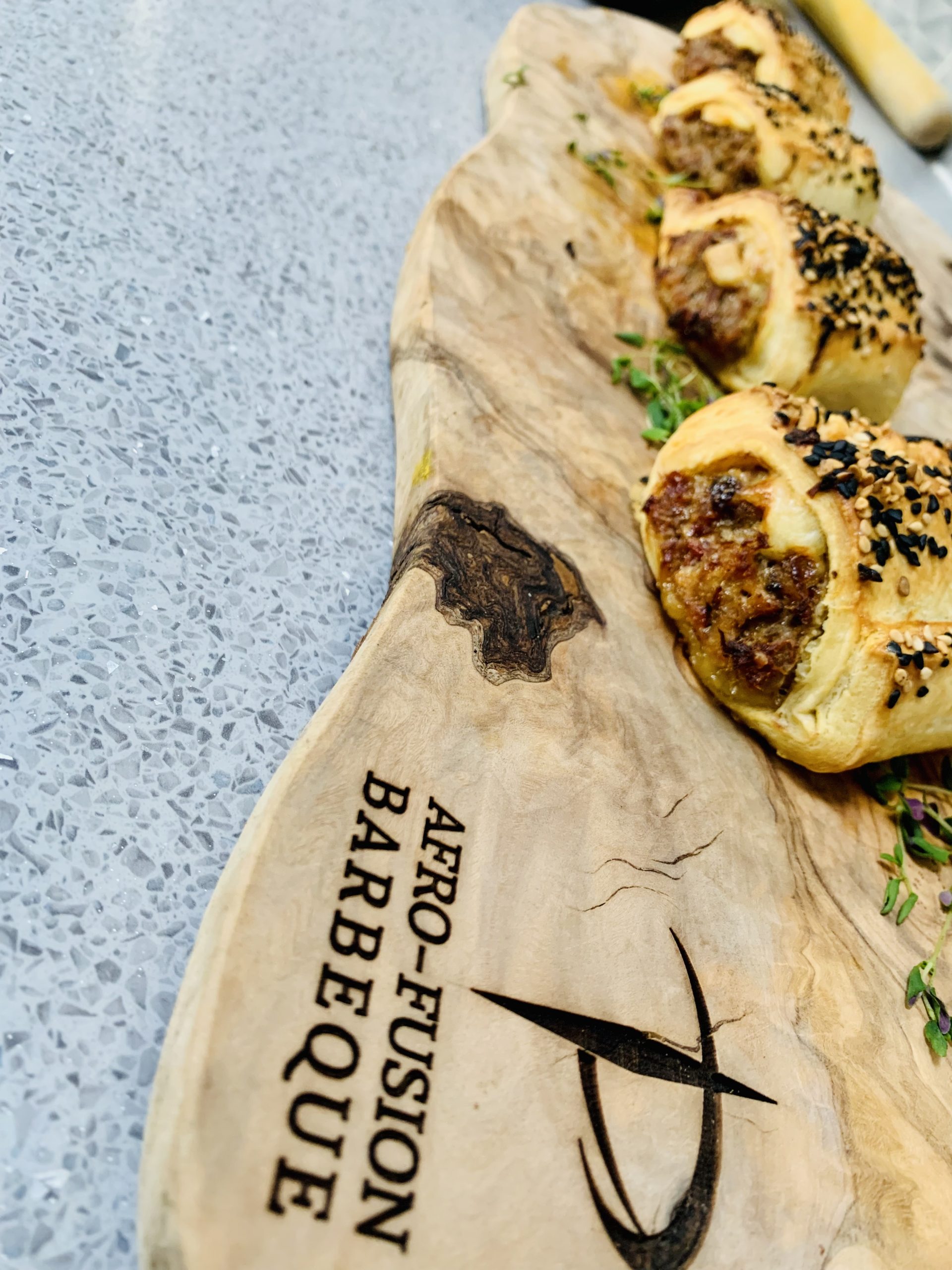 Cajun-spiced and smoked pork sausage roll with melted mature cheddar cheese.