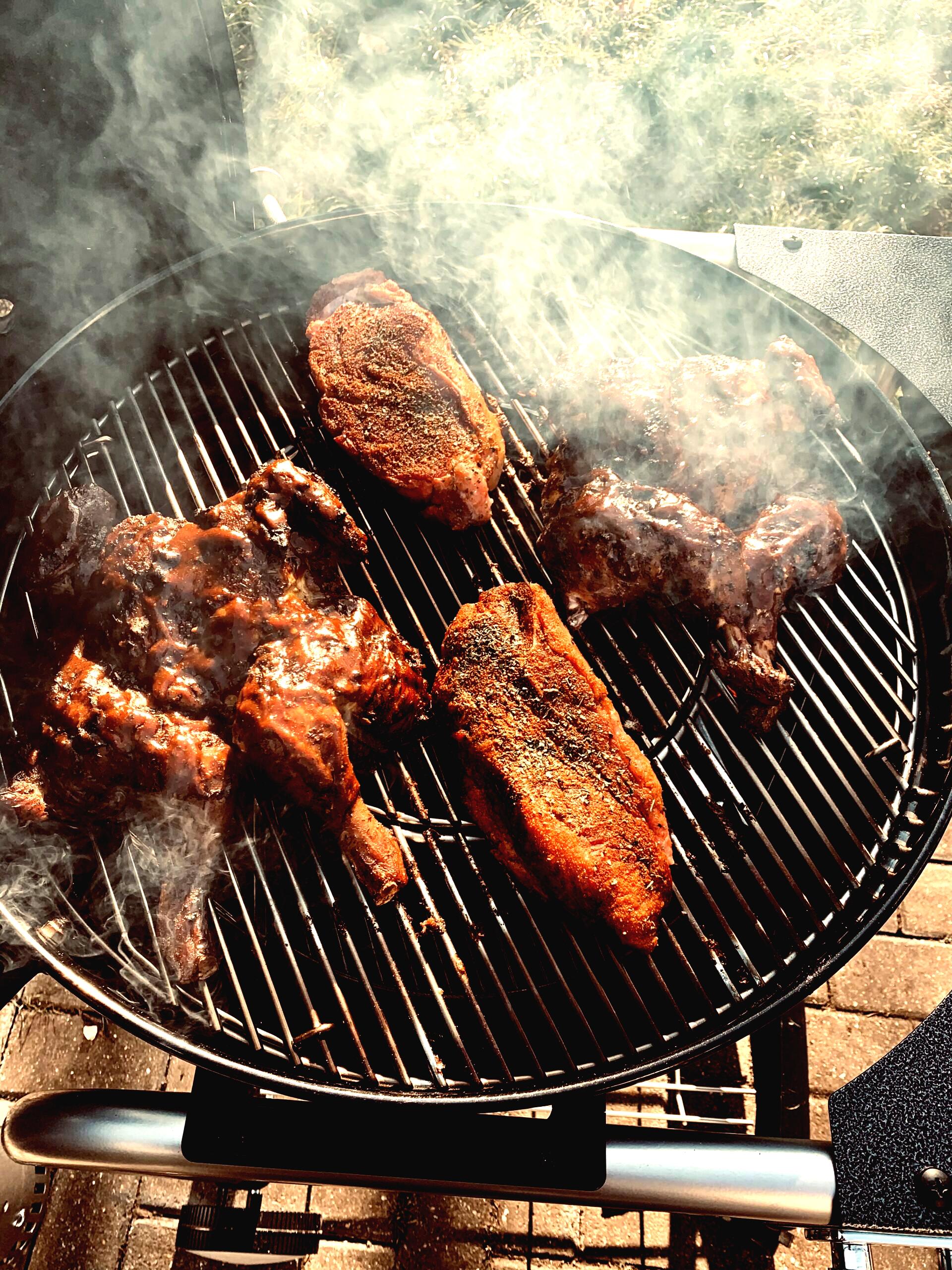 Traditional southern American style slowly cooked BBQ half chicken cooked over charcoal and wood. This method gives the chicken deep flavours with a succulent, tender texture. The chicken is seasoned for 24hrs with our unique Louisiana bourbonĀ BBQ sauce.